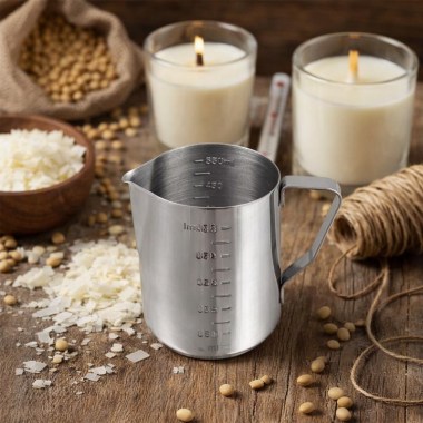 Ανοξείδωτη κανάτα ειδικά σχεδιασμένη για τη μεταφορά και χύτευση λιωμένου κεριού με ακρίβεια και ασφάλεια. Διαθέτει εμφανή διαβάθμιση μέτρησης, που επιτρέπει τον ακριβή υπολογισμό της ποσότητας, ιδανική για σταθερά και επαναλαμβανόμενα αποτελέσματα.