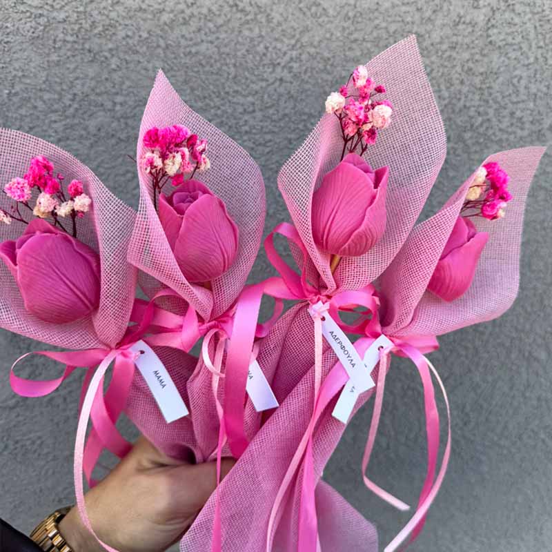 Μπομπονιέρα Βάπτισης από Αρωματικό Κερί Σόγιας Σε σχήμα Τουλίπας