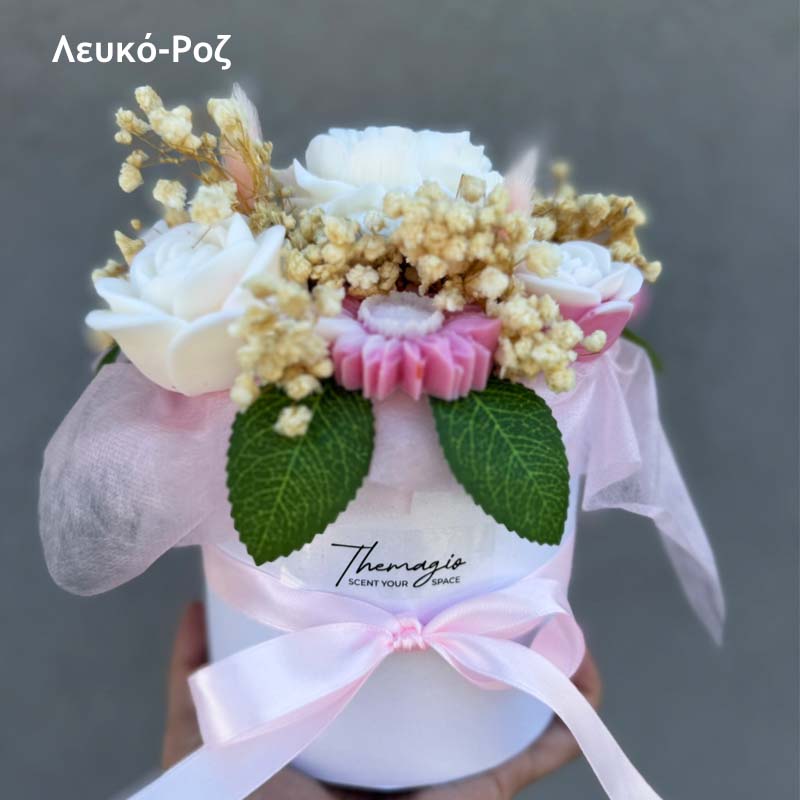 Αρωματικό Μπουκέτο από λουλούδια κεριού σόγιας Άσπρο Κουτί 12x14cm