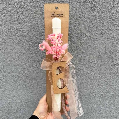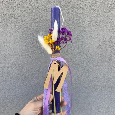 Πασχαλινή λαμπάδα στρόγγυλη με ξύλινο μονόγραμμα
