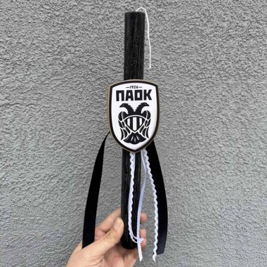 Πασχαλινή λαμπάδα στρόγγυλη με ξύλινο διακοσμητικό ομάδας 30cm